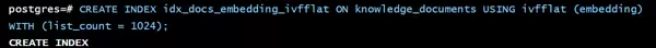 CREATE INDEX idx_docs_embedding_ivfflat ON knowledge_documents USING ivfflat (embedding) WITH (list_count = 1024);