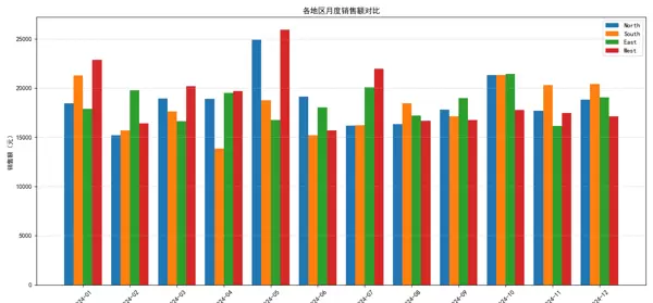 3. 各地区月度销售对比(分组柱状图)