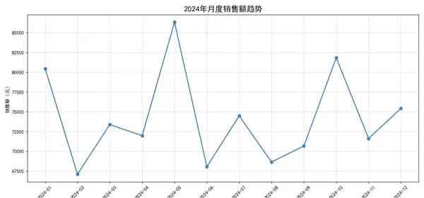 对某电商平台的用户月度销售数据进行综合分析,挖掘销售趋势、品类分布、区域表现及数据分布特征。