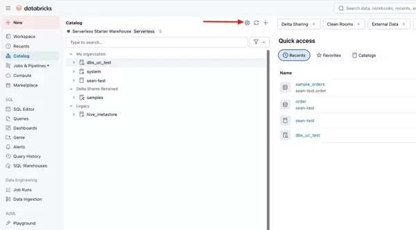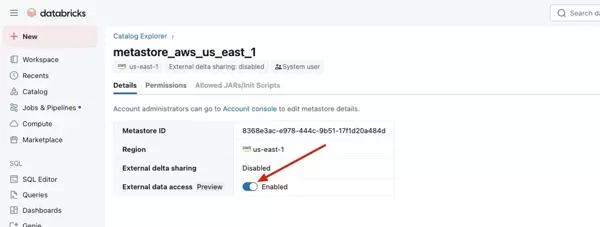 - 首先需启用 Databricks 的 Catalog 外部访问功能,具体操作如下所示:
