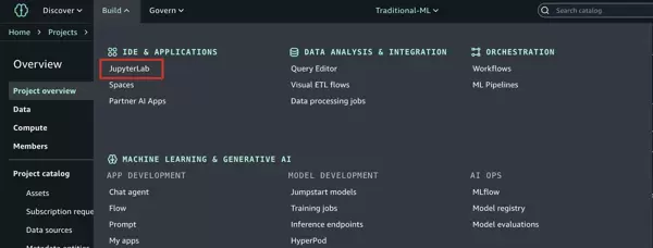 接下来我们将配置 Sagemaker Unified Studio 中的 JupyterLab 环境,具体操作如下图所示: