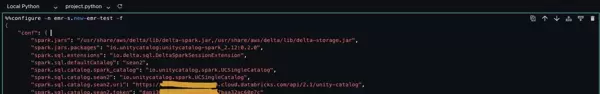 "spark.sql.defaultCatalog": "<databricks uc>", # 此处修改为上面databricks中grant的UC