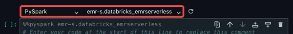 如需使用 EMR Serverless 作为计算资源,可在每个代码单元格上方进行选择:左侧选择 PySpark 运行环境,右侧指定已创建的 EMR Serverless 资源。