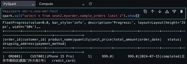 spark.sql("select * from sean2.myorder.sample_orders limit 1").show()