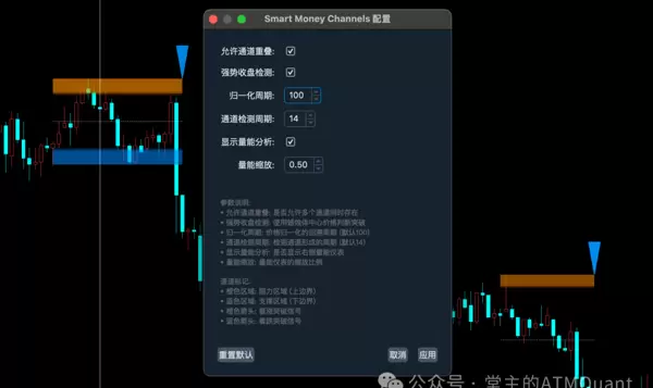 Smart Money Channels共包含6个核心参数,合理配置这些参数才能使指标发挥最佳效能。