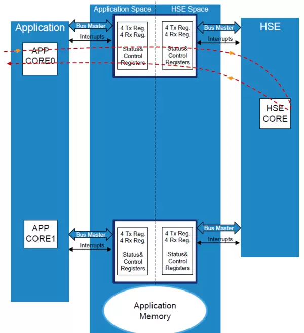 MU即Message Unit(消息单元),为主核与HSE之间的通信通道。默认仅启用MU0,应用程序可通过调用“Set Attribute”服务扩展功能。