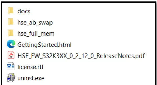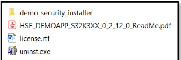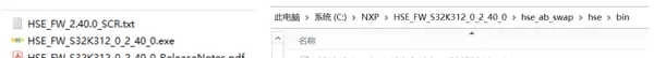 从NXP官网下载对应型号的HSE加密固件文件(例如:HSE_FW_S32K312_0_2_40_0.exe),双击运行安装程序后,系统将在指定目录生成Pink格式的固件文件,如下图所示: