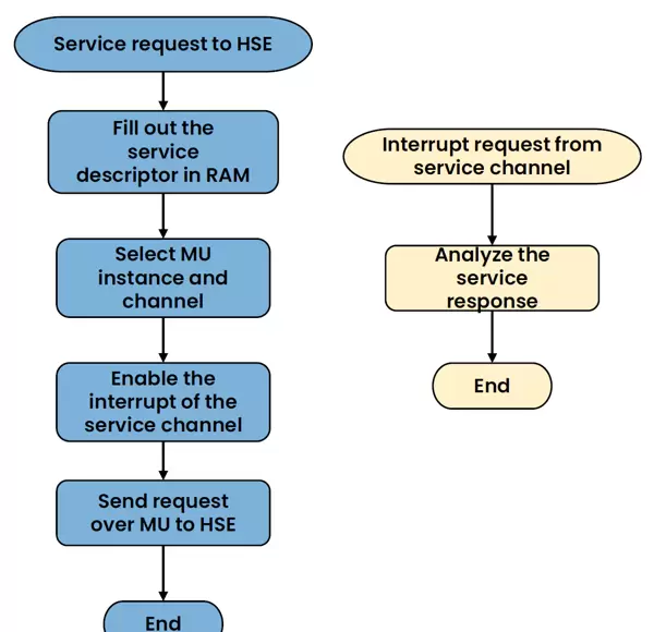 根据实际应用需求,可以选择轮询响应结果或使用中断通知机制。以轮询方式为例,在发送请求给HSE后,主核可通过while循环持续查询返回状态,直到收到响应或超时(可自定义超时阈值)。通过解析返回码可判断操作结果,常见响应码如下:
