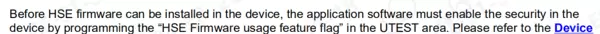 Step1: 根据REF02文档指引,首先检测当前HSE的安装状态。若尚未安装,需先使能HSE FW特性标志位,即向地址0x1B000000(UTEST区域)写入8字节数据:0xAABBCCDDDDCCBBAAUL。
