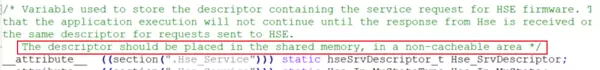 - HSE服务参数所涉及的变量地址需存放在non-cacheable内存区域,以确保数据一致性,如下图所示: