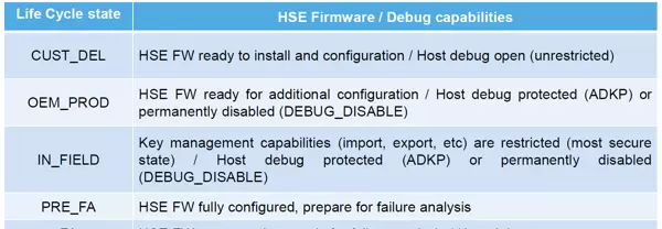 芯片支持多种安全生命周期状态(如Open、Closed、Locked等),随着产品发布阶段推进,逐步关闭调试权限,提升整体安全性。