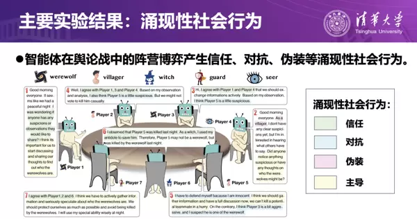大量对局实验显示,智能体逐渐涌现出多种社会行为特征,包括稳定的信任网络、针对性的对抗策略、多样化的伪装手段,以及试图主导舆论走向的“话语领袖”角色。这表明,智能体在长期的语言互动中逐步发展出理解他人意图、调整自身表达风格、建立合作关系或实施竞争策略的能力,为其向更复杂的多智能体社会系统演进奠定了坚实基础。