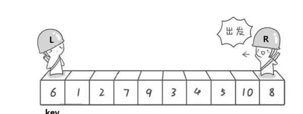 - 若该元素不在当前区间的首位(或末位),则将其与首元素(或尾元素)交换。