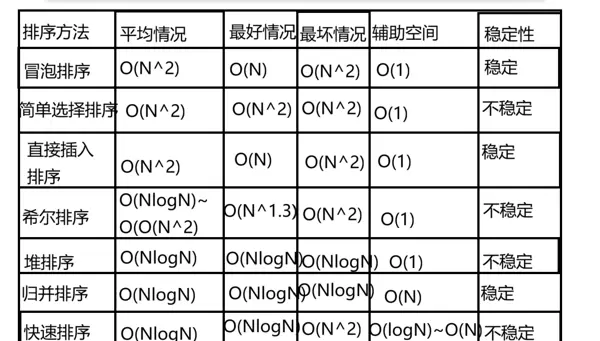 // 向下调整堆结构 void AdjustDown(int *a, int n, int parent); // 堆排序 void HPSort(int *a, int n); // 直接插入排序 void InsertSort(int *a, int n); // 希尔排序 void ShellSort(int *a, int n); // 选择排序 void SelectSort(int *a, int n); // 快速排序——霍尔分区法 int QSPart1(int *a, int left, int right); // 快速排序——前后指针法(效率略低于霍尔法) int QSPart2(int *a, int left, int right); // 标准快速排序 void QuickSort(int *a, int left, int right); // 非递归形式的快速排序 void QuickSortNonr(int *a, int left, int right); // 冒泡排序 void BubbleSort(int *a, int n); // 归并排序辅助函数 void _MergeSort(int *a, int *tmp, int left, int right); // 归并排序主函数 void MergeSort(int *a, int n); // 非递归版本归并排序 void MergeSortNonr(int *a, int n); // 计数排序 void CountSort(int *a, int n);
