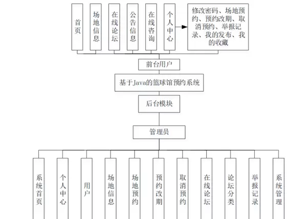 系统整体划分为两大功能模块:前台用户模块和后台管理员模块。