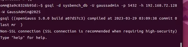 使用gsql工具模拟 sysbench 的连接方式,验证能否正常接入数据库,确保网络和认证配置无误。