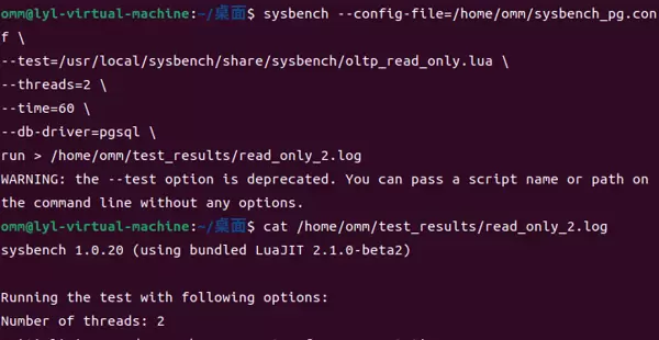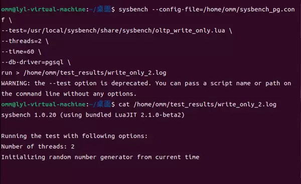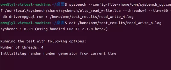 sysbench --config-file=/home/omm/sysbench_pg.conf /usr/local/sysbench/share/sysbench/oltp_read_write.lua --threads=4 --time=60 --db-driver=pgsql run > /home/omm/test_results/read_write_4.log