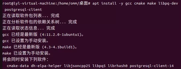 sudo apt install -y automake libtool pkg-config apt install -y gcc cmake make libpq-dev postgresql-client