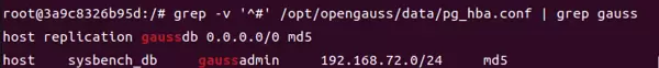 若 openGauss 启用了远程访问控制策略,需确保 IP 地址192.168.72.128被允许登录。可通过检查并修改pg_hba.conf文件添加相应规则:# 编辑 pg_hba.conf(位于数据目录) vi /opt/opengauss/data/pg_hba.conf # 添加以下行,允许 192.168.72.0/24 网段内的 gaussadmin 用户使用密码方式连接 host sysbench_db gaussadmin 192.168.72.0/24 md5