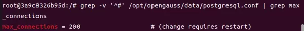 /opt/opengauss/data/postgresql.conf,将max_connections参数从默认值100修改为200,修改后重启数据库使配置生效;