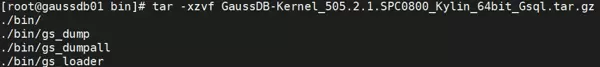 gs_dump postgres -U root -W huawei@123Pwd -h192.168.157.1 -p 8000 -f /home/Ruby/test.tar -F t