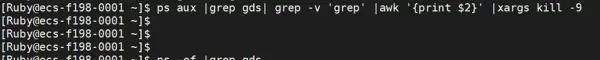ps aux |grep gds| grep -v 'grep' |awk '{print $2}' |xargs kill -9