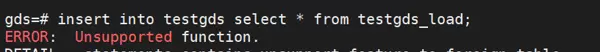 LOG INTO product_info_err PER NODE REJECT LIMIT 'unlimited'; INSERT INTO TESTGDS SELECT * FROM TESTGDS_LOAD;数据导入过程中出现错误,需检查数据库参数 enable_stream_operator 是否已设置为 ON。