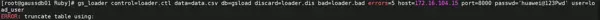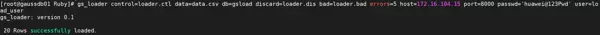 gs_loader control=loader.ctl data=data.csv db=gsload discard=loader.dis bad=loader.bad errors=5 host=172.16.104.15 port=8000 passwd='huawei@123Pwd' user=load_user