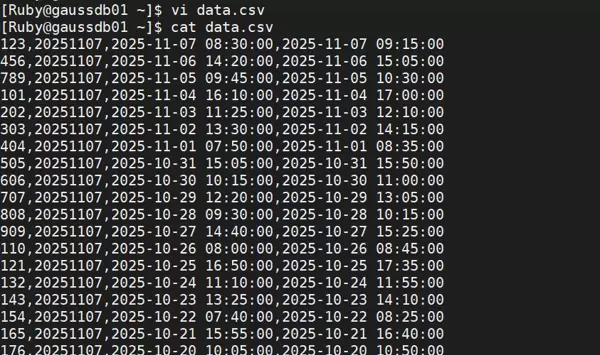 gsql -d postgres -p 8000 -Uroot -Whuawei@123Pwd -f /data/table.sql