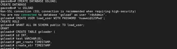 CREATE USER load_user WITH PASSWORD 'huawei@123Pwd'; GRANT ALL ON SCHEMA public TO load_user;