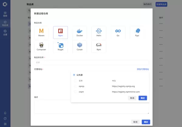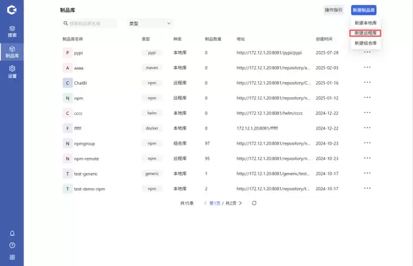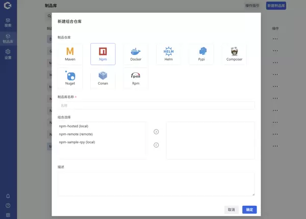 点击“新建制品库”,选择“本地库”,填写相关信息后确认提交即可完成创建。