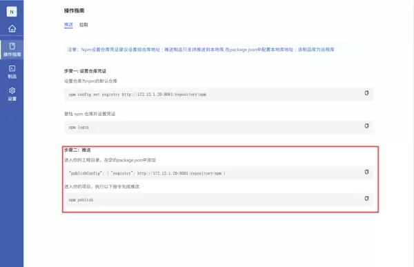 根据 npm 操作指引更新相关文件,并在项目根目录执行指定命令进行认证配置。