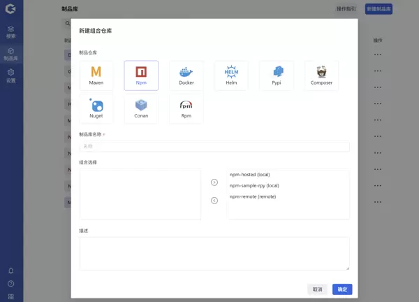 | 制品组合 | 查看属于某组的 Npm 制品 |