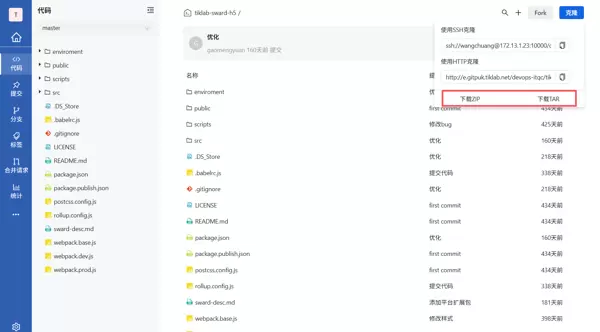 除了使用git命令拉取外,GitPuk还提供直接下载功能。用户可根据需要选择不同的压缩格式(如ZIP或TAR)进行下载。