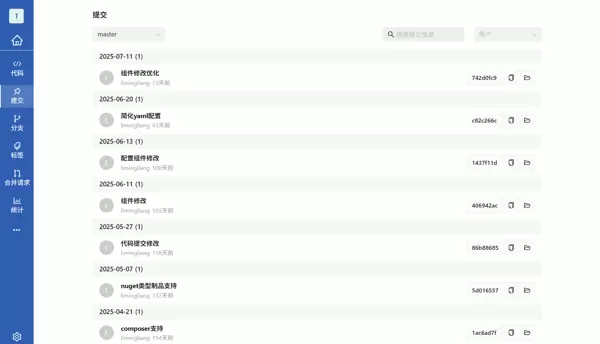 进入仓库主页后,点击仓库名称下方的“提交”标签页,即可查看所有提交记录。系统支持按以下条件筛选: