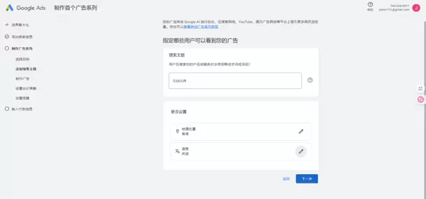 根据所选目标,选择对应的广告系列类型,常见的包括搜索广告(关键词触发)、展示广告、视频广告、购物广告及应用推广广告等。