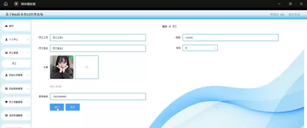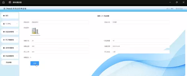 员工管理模块支持员工基本信息的增删改查,设置角色权限,实现登录认证与权限分级控制;药品分类模块用于对药品进行科学归类,便于后续查询与统计;药品信息模块详细记录药品名称、规格、生产厂家、批号、有效期、库存数量等关键字段,支持模糊检索与库存预警功能;员工考勤模块实现上下班打卡、请假申请提交、考勤记录查询等功能,并支持按月生成考勤报表;进货申请模块允许员工发起采购请求,经管理员审核后自动生成进货任务;药品进货模块负责登记实际到货信息,并同步更新库存数据;药品销售模块则完成销售登记、销售记录查询与销售数据分析,支持按日期、药品名称等条件进行筛选汇总。