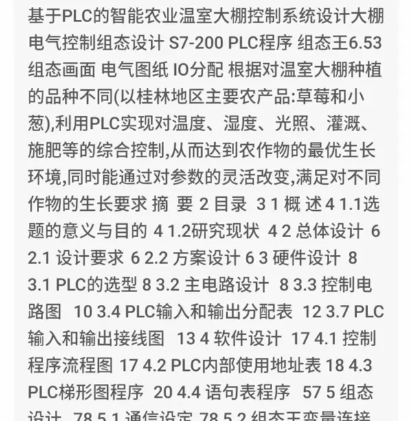 作为整个系统的“大脑”,PLC程序承担着核心控制逻辑的执行任务。以温度调控为例,其梯形图虽然结构简洁,但在实际调试过程中却暗藏陷阱。例如,AI模块采集到的原始数据需除以10才能转换为真实温度值,这一细节常被初学者忽略。我们曾因此吃过亏:一次参数设置错误,导致正午时分卷帘机意外全开,直接晒毁了两垄黄瓜幼苗。由此可见,程序编写不仅要逻辑严密,更要结合现场工况反复验证。