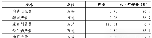 产量方面,全年蔬菜产量达17.72万吨,同比增长2.8%;水果产量为3.16万吨,同比下降22.8%。