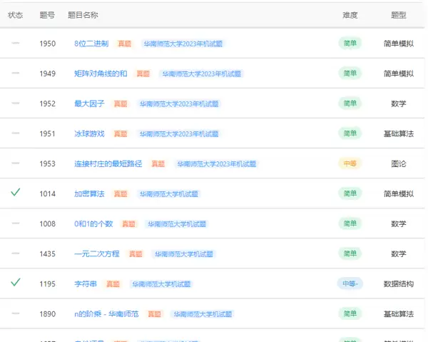 N诺 DreamJudge 题库支持通过关键词“华南师范大学”快速筛选该校历年计算机复试的上机真题。所有题目均符合考试大纲要求,并按难度智能排序,便于考生循序渐进练习。配合《计算机考研机试攻略》使用效果更佳,书中例题可通过题号在题库中精准定位查找。