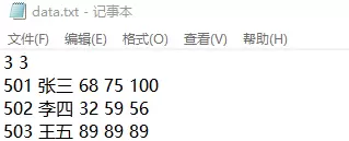 - 从文件读取n名学生的学号、姓名及m门课程的成绩