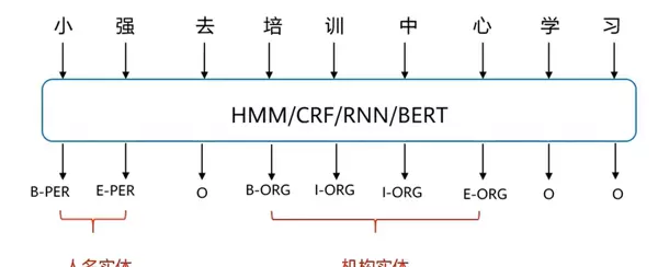 通常采用BIOES标注体系:B表示实体开始,I表示实体中间部分,E表示结束,O表示非实体,S表示单字实体。