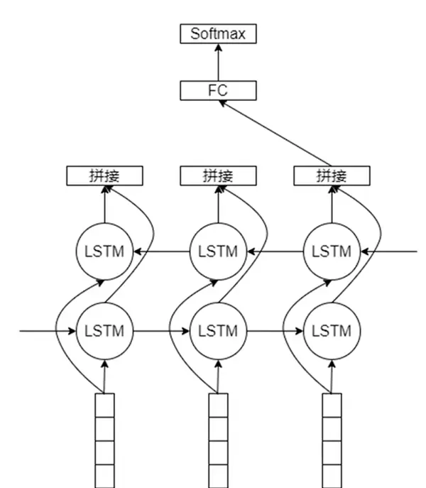 使用循环神经网络结构建模文本序列。以双向LSTM为例,前向和后向LSTM分别读取正序和逆序输入,相同时间步的隐藏状态被拼接起来,形成包含上下文信息的完整表示。