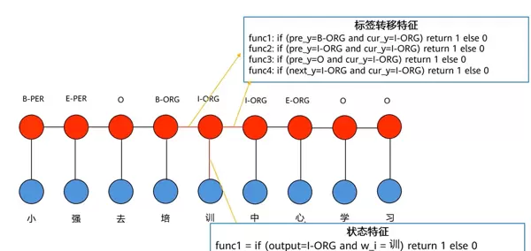 标签转移特征:强调相邻标签之间的依赖关系,例如在命名实体识别中,“B-PER”之后更可能接“I-PER”,而非直接跳转为其他类型标签。