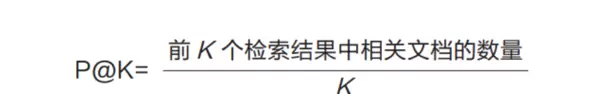 P@K 衡量的是前K个返回结果中的精确率,即在这K项中包含多少真正相关的内容。其分子为前K个结果中相关文档的数量,分母为固定值K。该指标特别适用于用户只关注前几条结果的应用场景。