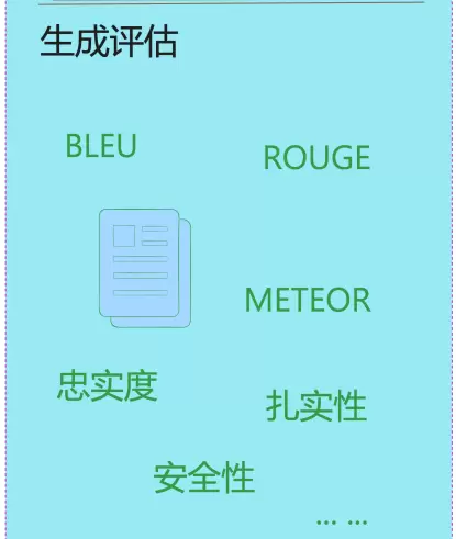 为了全面评估生成内容的质量,通常会结合使用定量指标(如BLEU、ROUGE)和定性指标(例如回答的相关性、语义连贯性、语境契合度、扎实性及忠实度)。鉴于这些维度难以完全自动化衡量,人类的主观评分仍是在评估流程中不可或缺的一环。