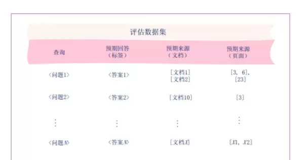 针对RAG(检索增强生成)系统设计的专用“评估数据集”是一种标准化的性能测试模板。它通过构建明确的“问题—答案—来源”三元组关系,用于验证系统在信息检索和答案生成两个环节的可靠性与准确性。