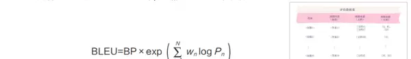 公式中,BP代表长度惩罚(Brevity Penalty),用于防止过短回答获得虚高评分:当生成文本短于参考文本时,BP小于1;否则等于1。Pn表示n-gram精确率,wn为各阶n-gram的权重,通常设为相等。