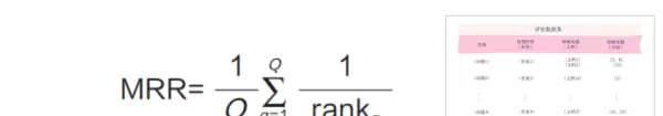 公式中,Q代表总的查询数量,rankq表示第q次查询时首个相关文本块的排名。该指标仅取第一个相关项排名的倒数进行计算,因此更强调“首条命中”的效率:排名越靠前,倒数值越大,MRR得分也越高。