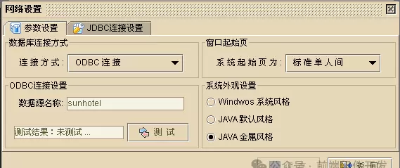 对于使用JDBC连接的用户,同样在参数设置界面(如图15)中选择JDBC连接方式,然后点击“JDBC连接设置”按钮进入详细配置页面(如图16)。在此页面中填写数据库名称、登录用户名、密码、服务器IP地址及端口号等信息。完成填写后点击“测试”按钮,若连接成功则会提示“测试成功”,系统也会自动确认连接状态。建议连接成功后退出并重新进入系统以确保配置正确加载。